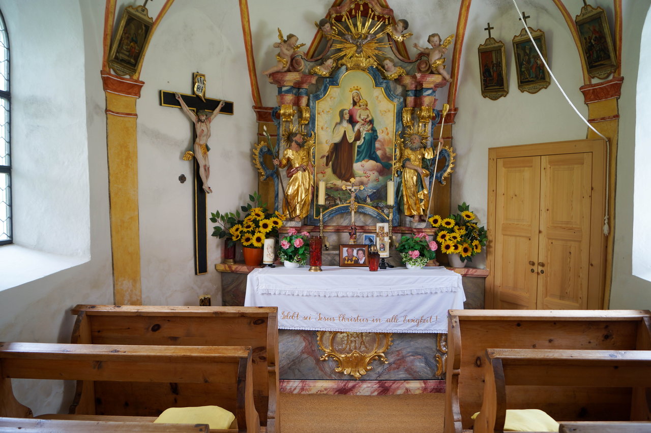 Das Altarbild wurde vom Maler Sturm gemahlen, es ist ein Zirmaltar der über das Hochjoch vom Schnalstal ins Rofental getragen wurde.